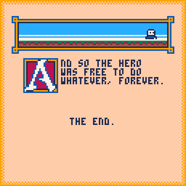 After a long journey and a grueling boss battle, the HERO emerges victorious, in part due to aid supplied by the HERO'S GUILD. Now that the DEMON LORD is defeated, the HERO begins to think. Maybe there is more to life than this hero business. The HERO resolves to leave the GUILD... but how does that whole process go, anyway?
